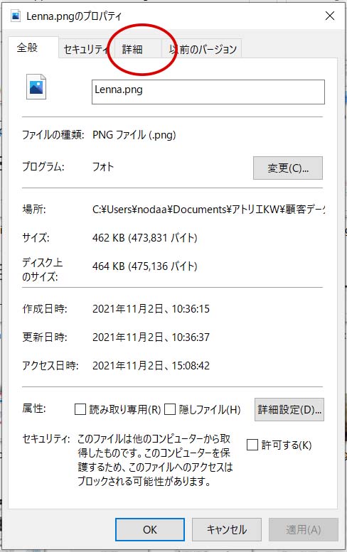 なお、画像を選択して右クリック、プロパティを見るということは、この後の説明でもでてきますし、今後よく使うことになりますので覚えておいて損はありません。
