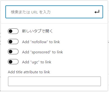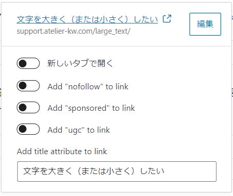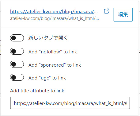 リンクのメニューを見るとリンクアドレス以外に設定項目があります。
