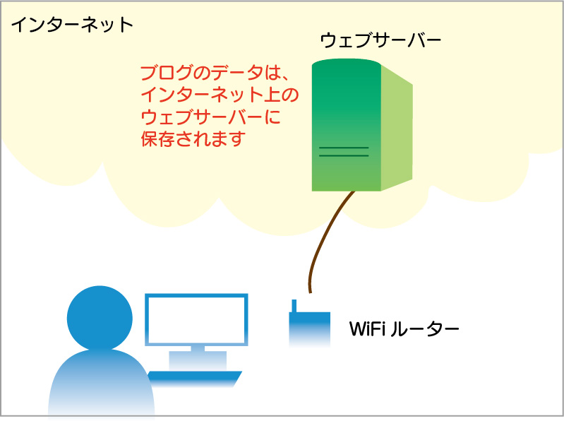 ブログのデータは、インターネット上のウェブサーバー保存されます。