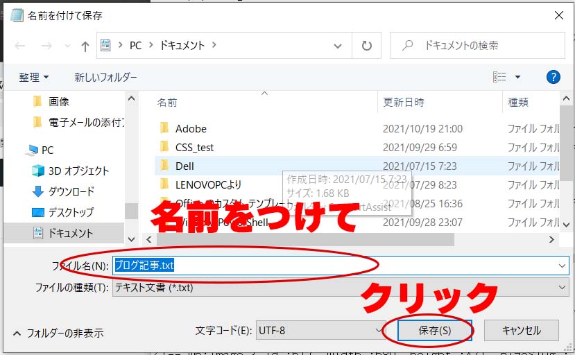 この状態で、メモ帳を保存します。