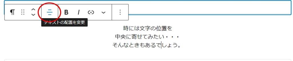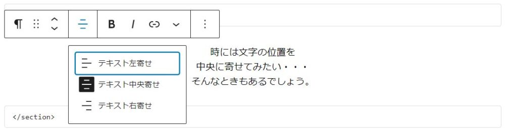 そうすると、テキストを左寄せにするか中央寄せにするか右寄せにするかを選択するメニューが現れます。